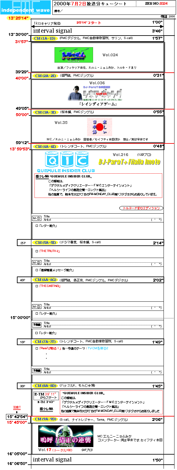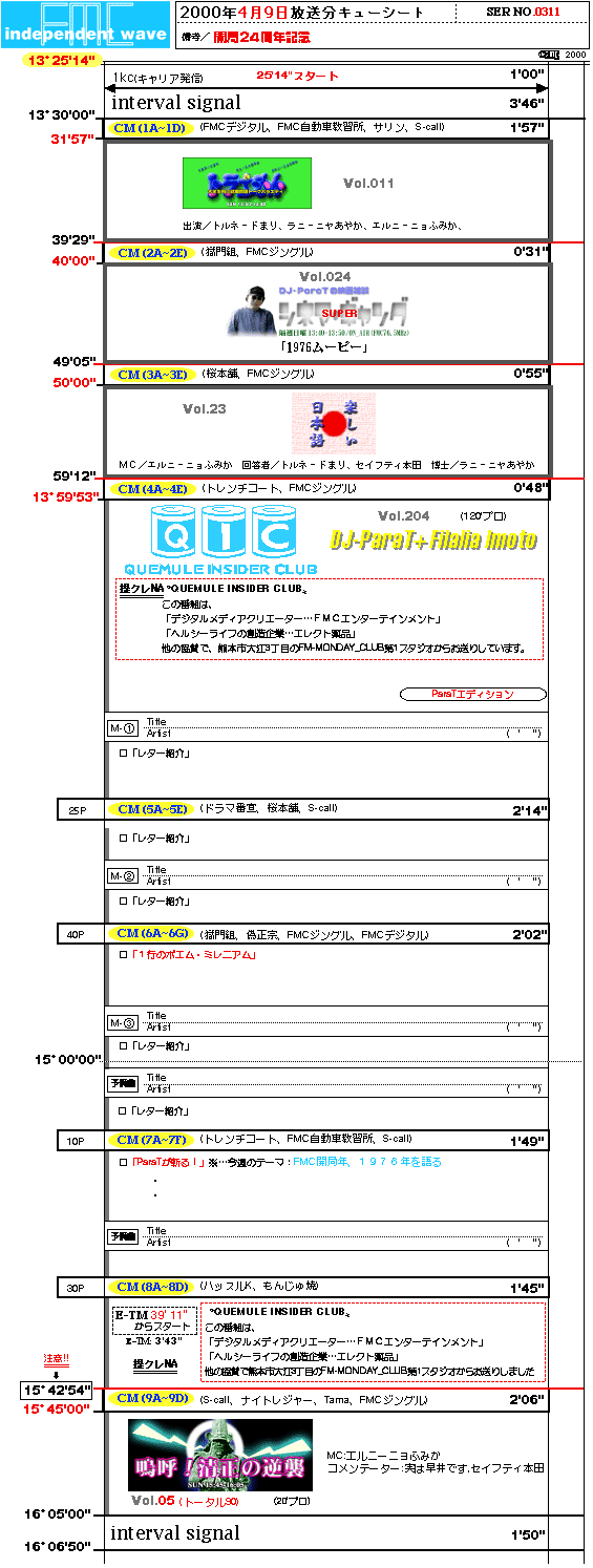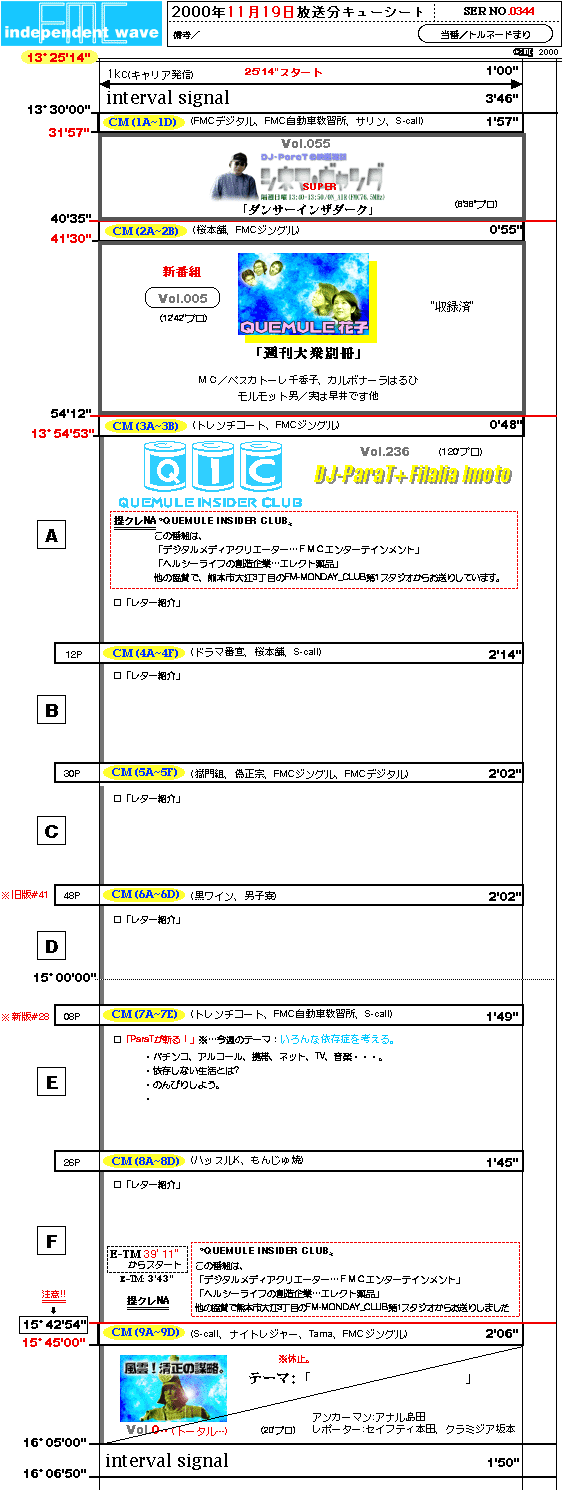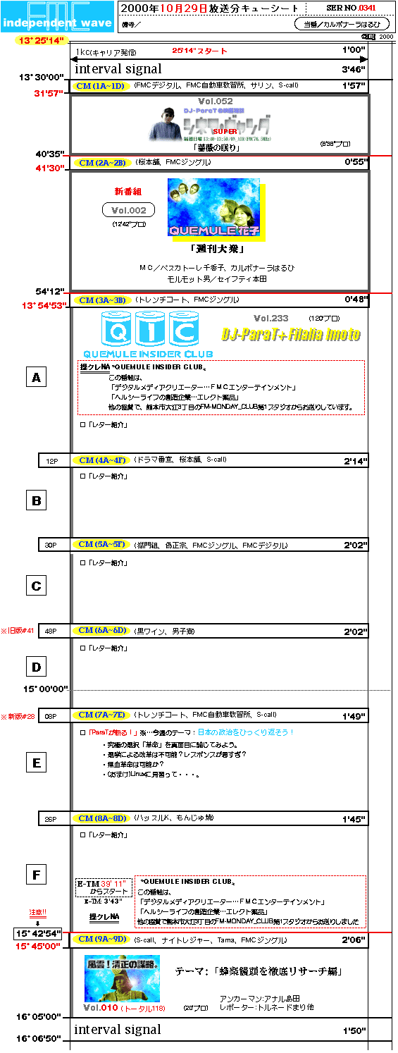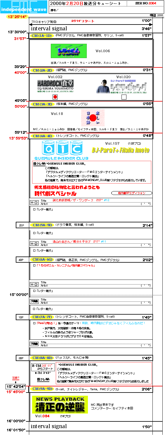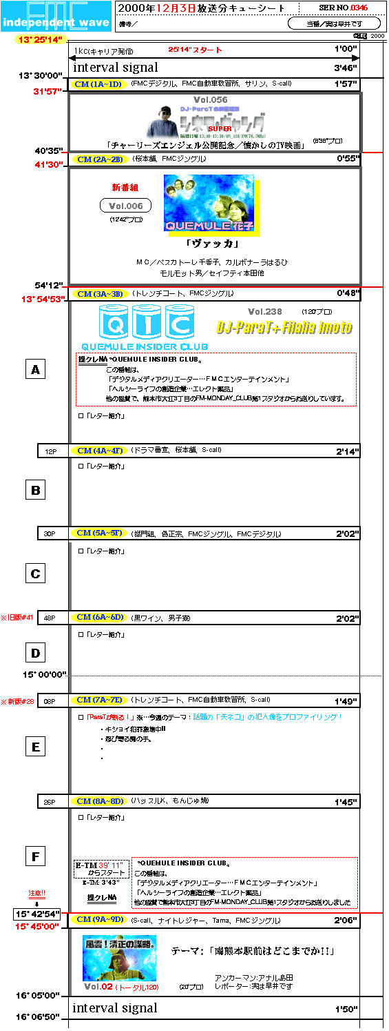 | 20001022 | 「QUEMULE花子」開始。「QIC」5分拡大。 |