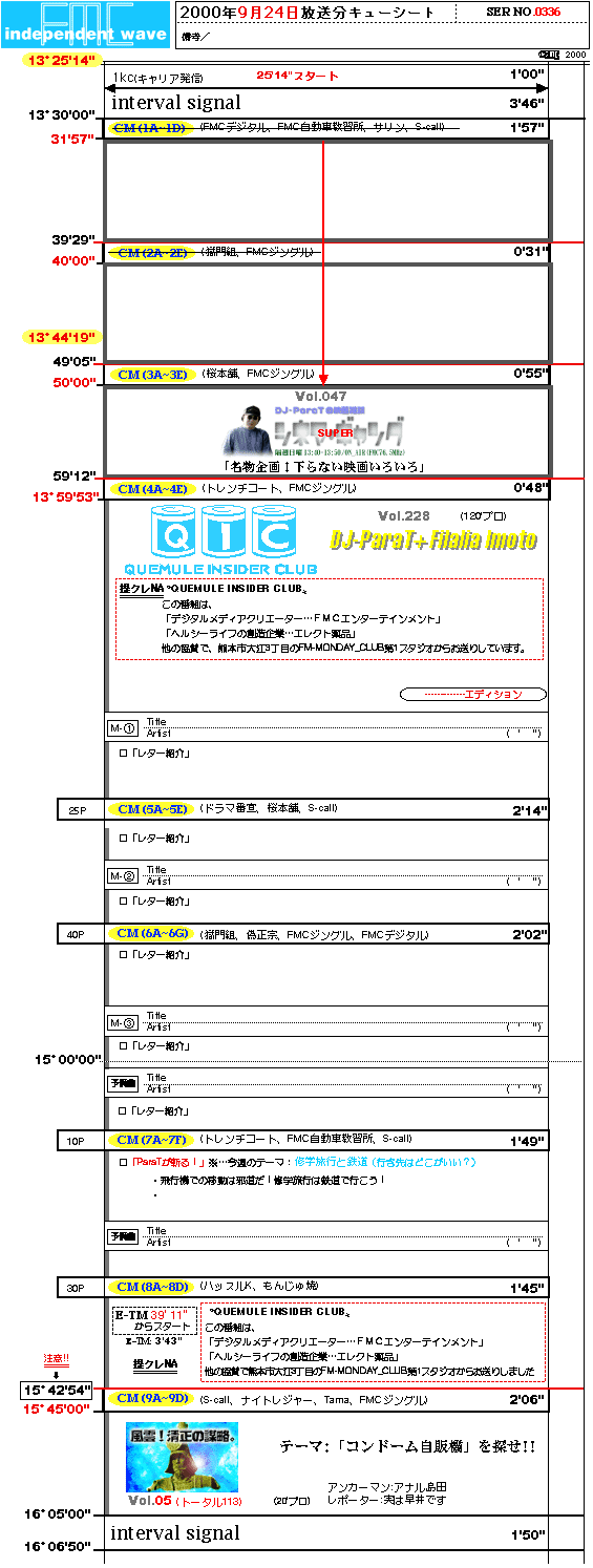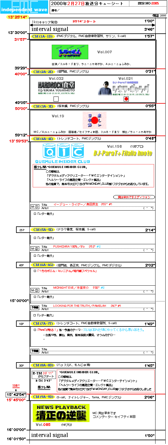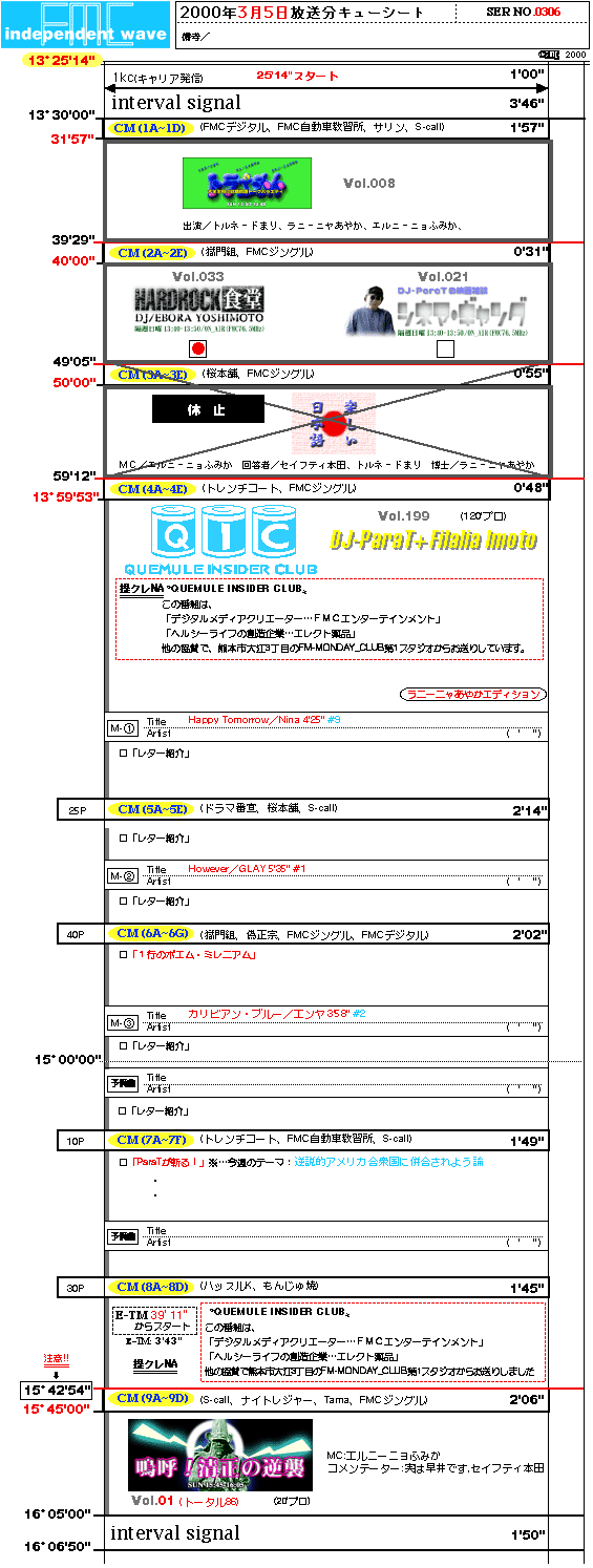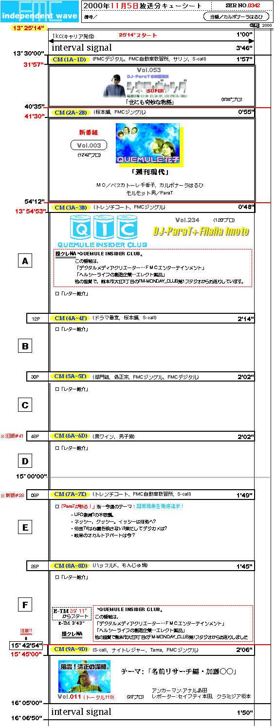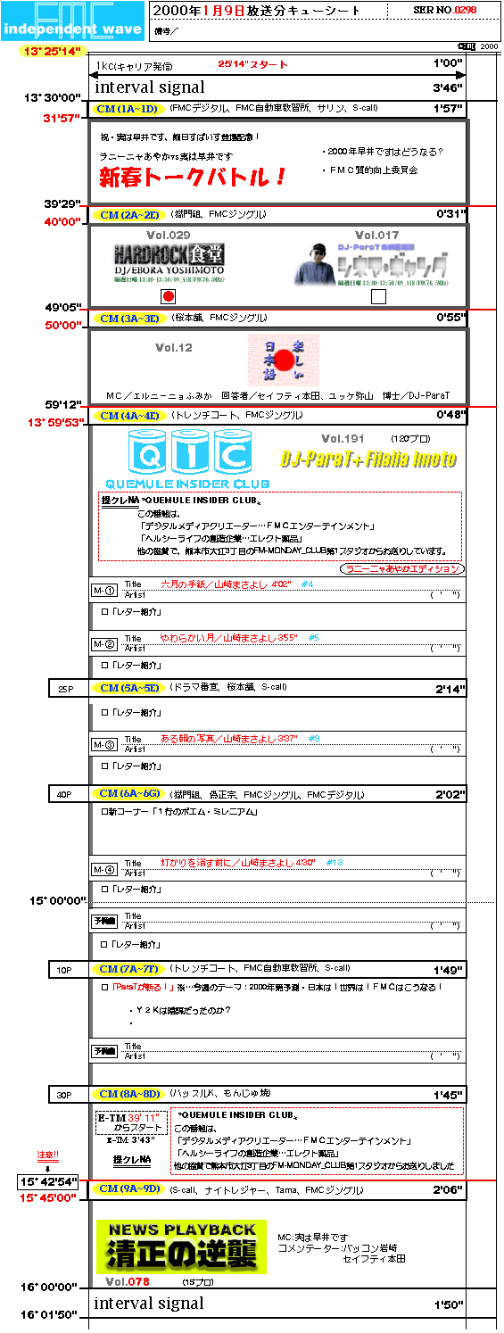 | 20001022 | 「QUEMULE花子」開始。「QIC」5分拡大。 |