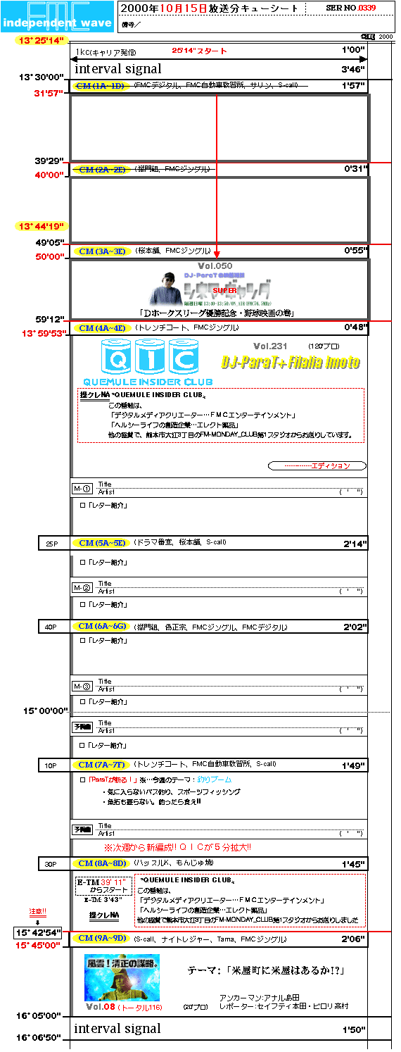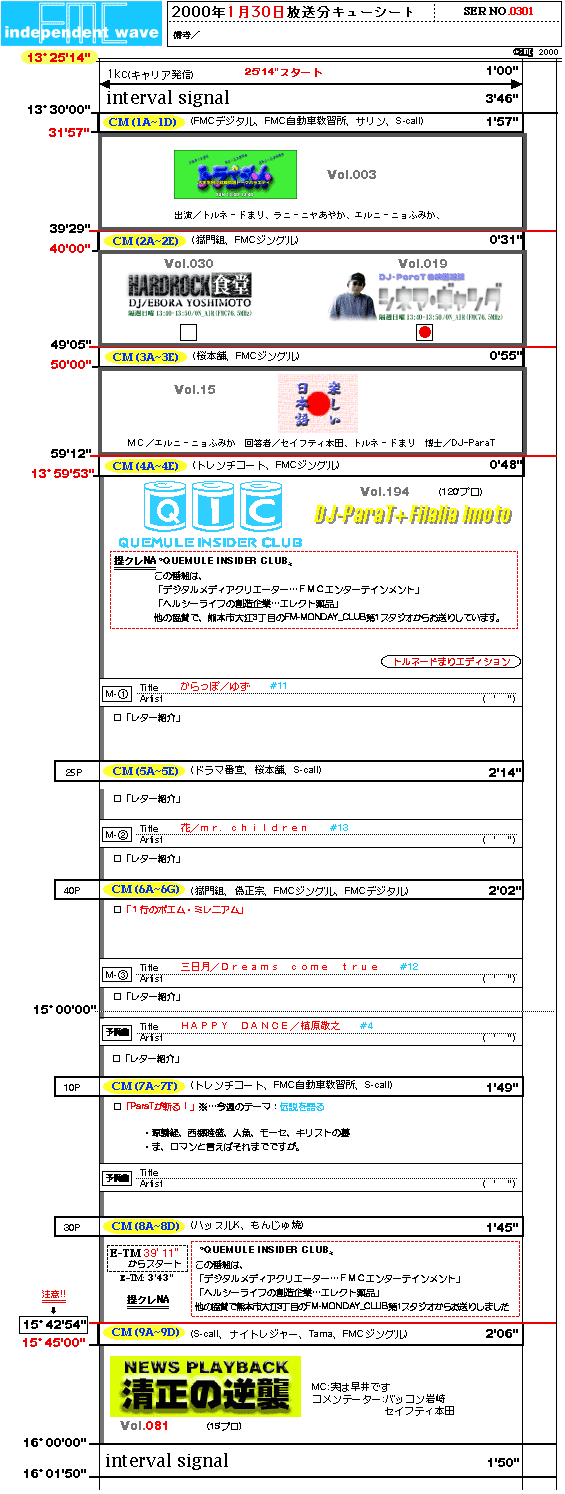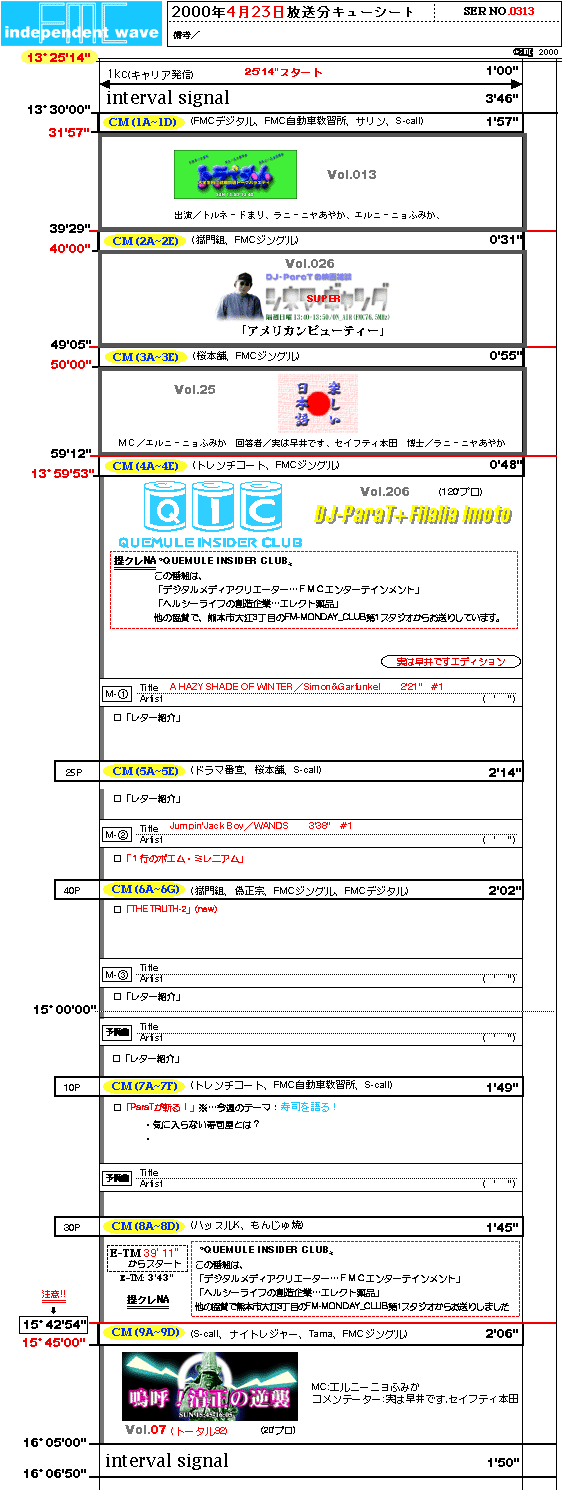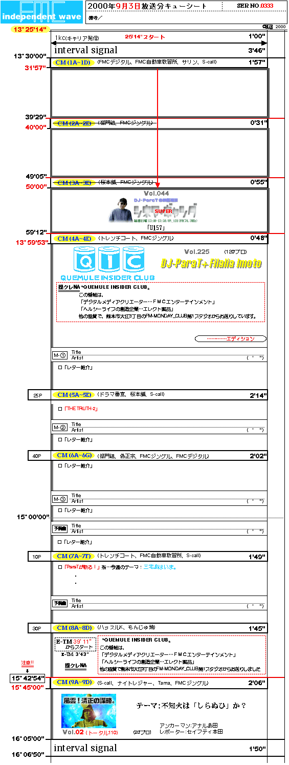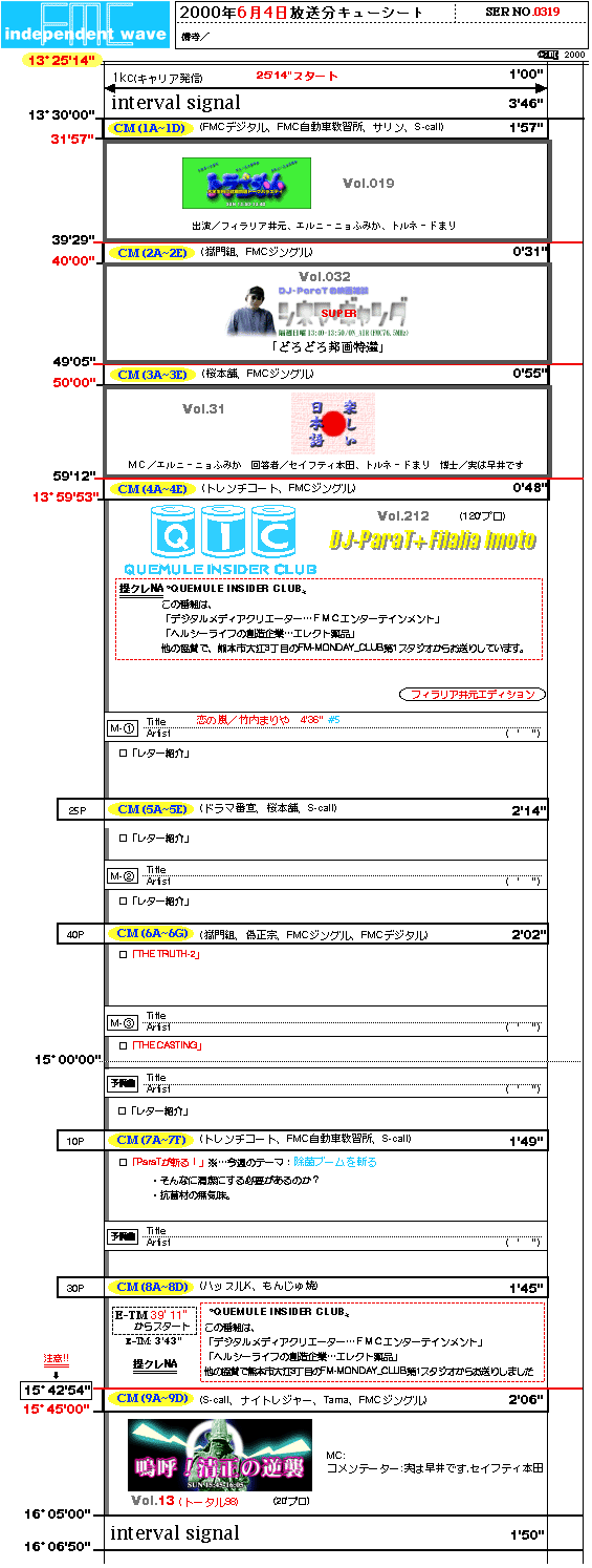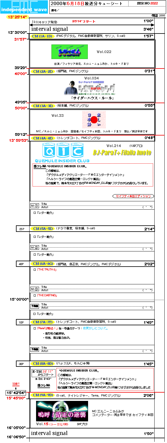 | 20001022 | 「QUEMULE花子」開始。「QIC」5分拡大。 |