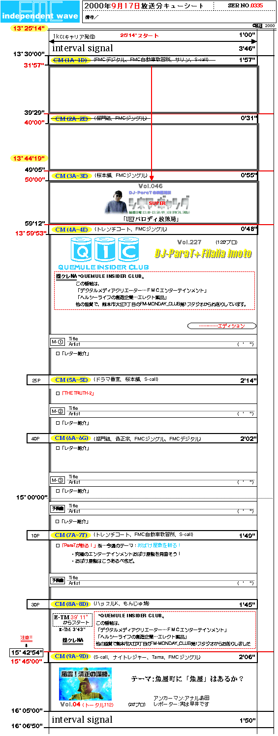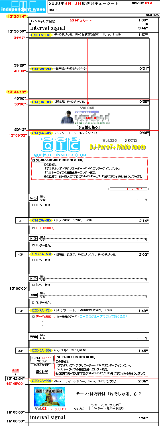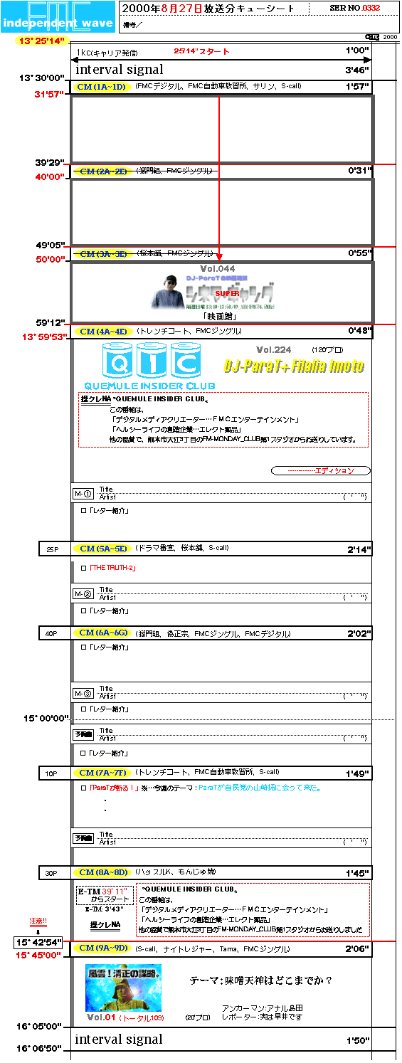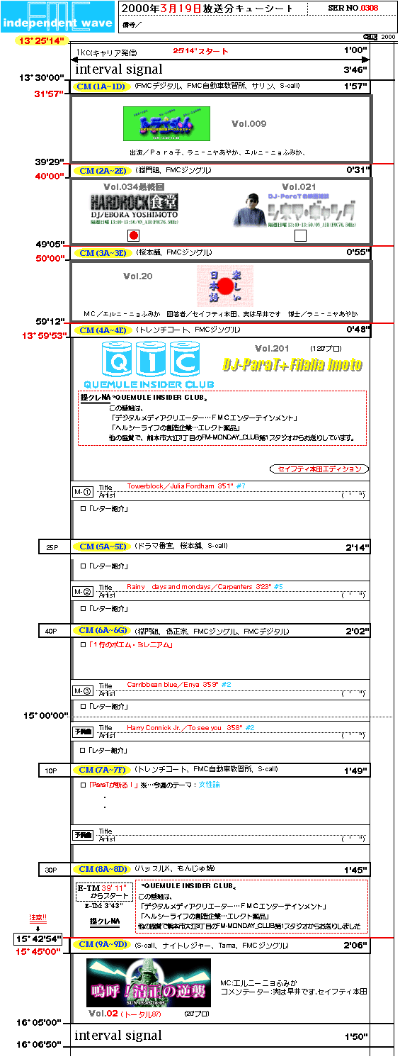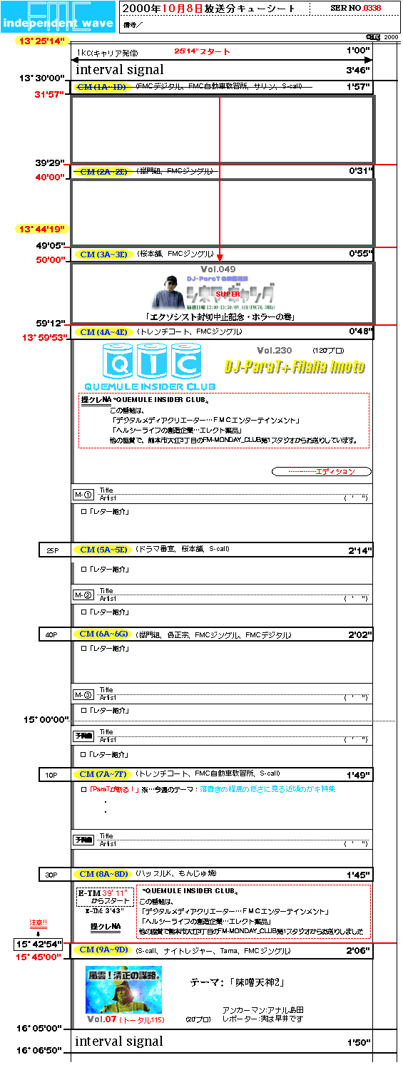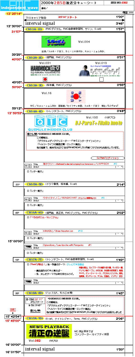 | 20001022 | 「QUEMULE花子」開始。「QIC」5分拡大。 |