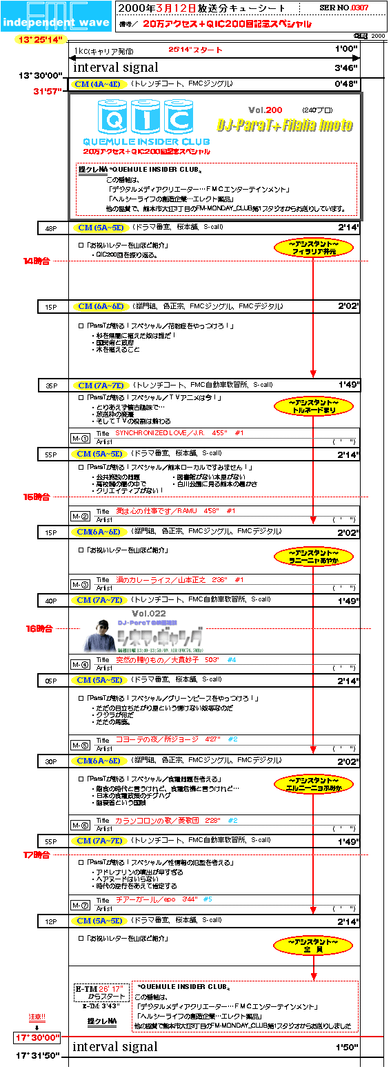 | 20000312 | 「QIC/20万アクセス+200回記念スペシャル」放送 |