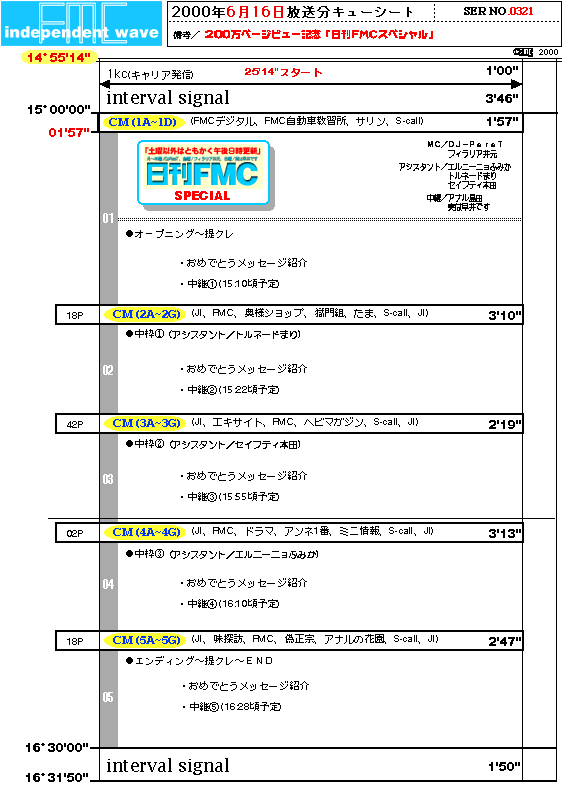 | 20000616 | 特番「200万ページビュー記念/日刊FMCスペシャル」放送 |
