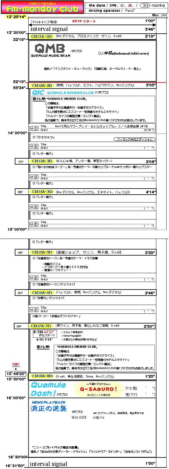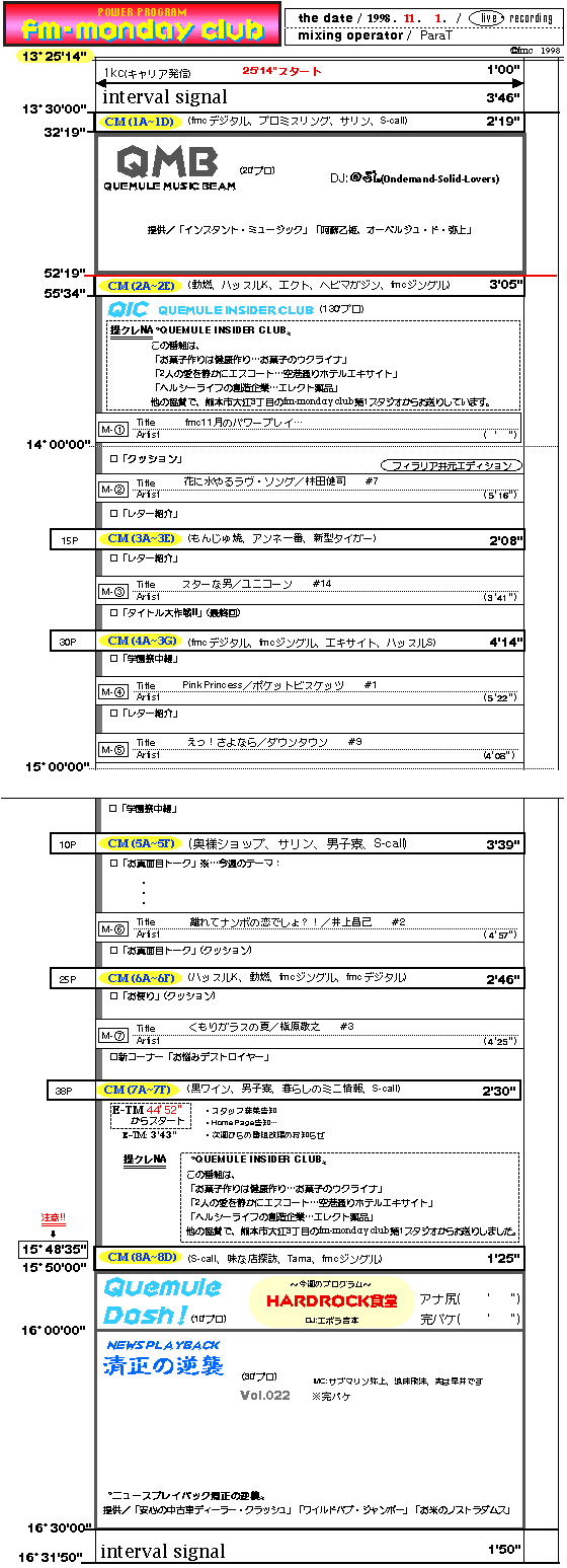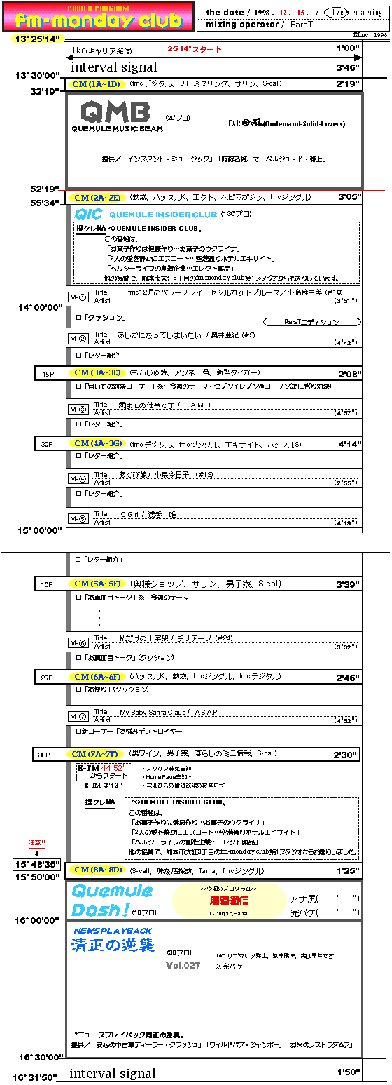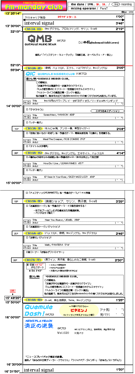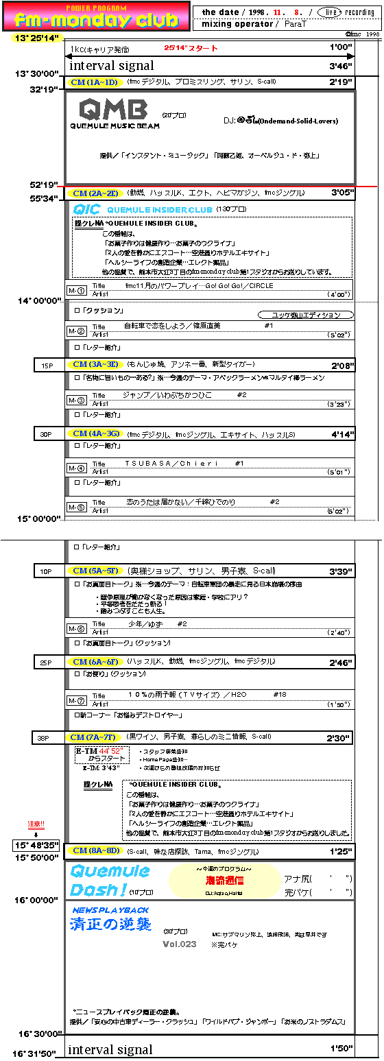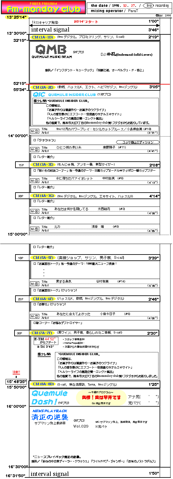 | 19981220 | QUEMULE-SABURO!(ラニーニャあやか)開始。 |