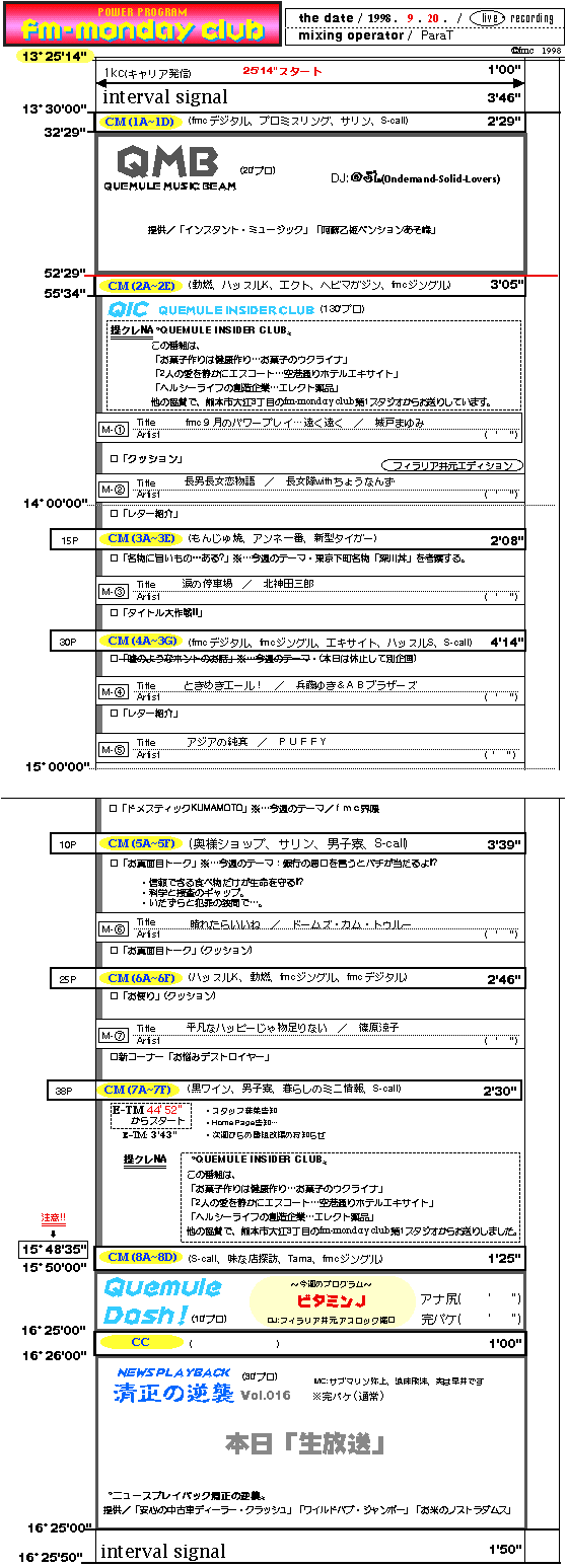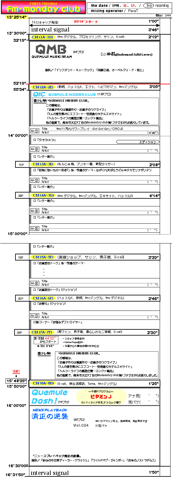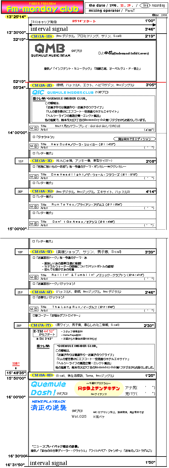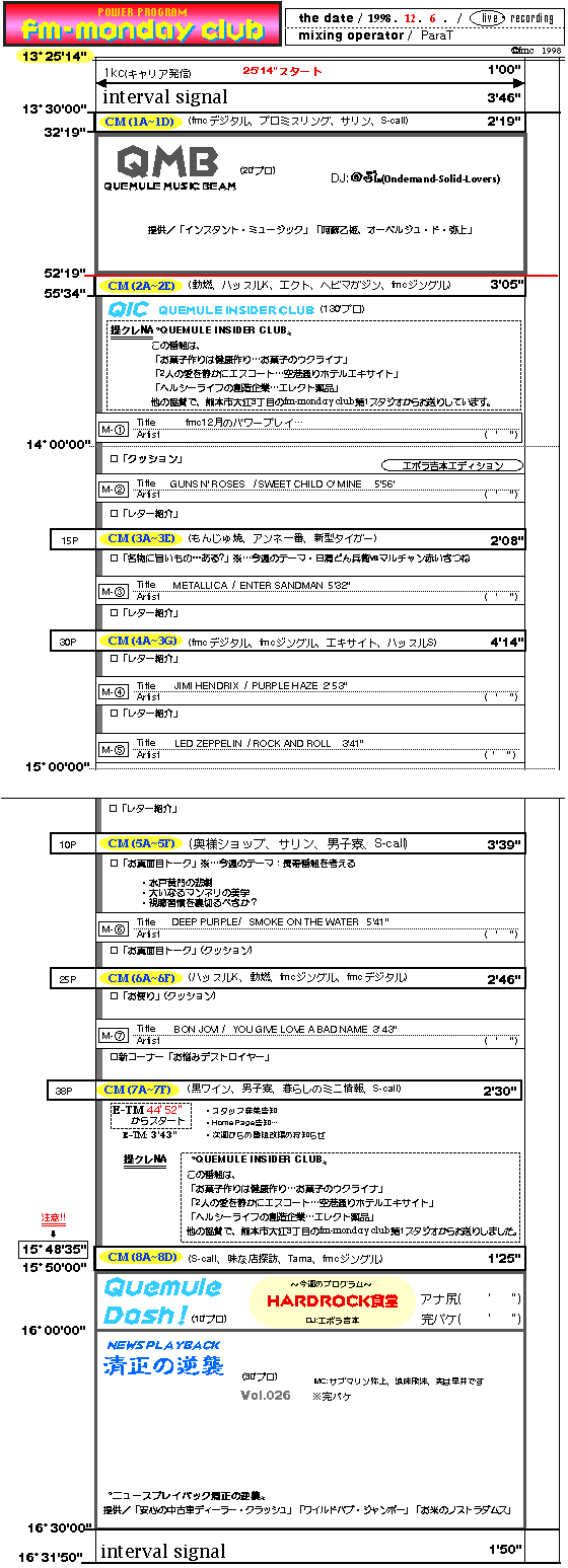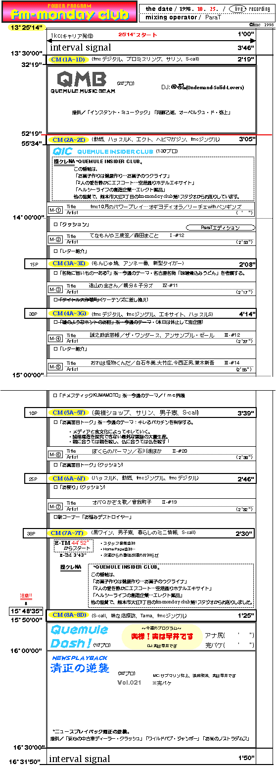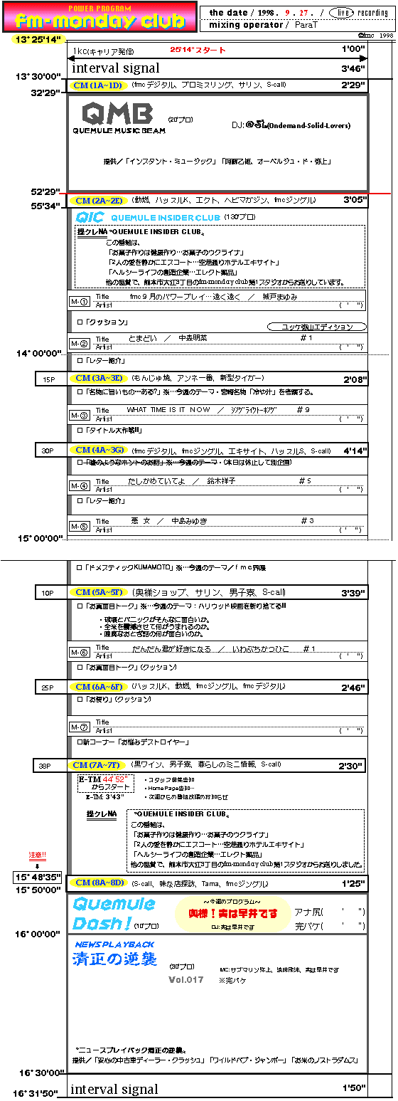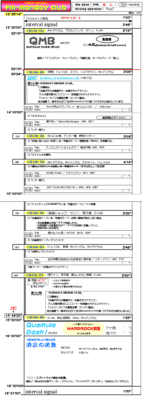 | 19981220 | QUEMULE-SABURO!(ラニーニャあやか)開始。 |
